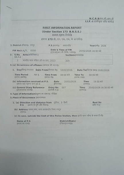 मामले की जानकारी मिलते ही पीपल फॉर द एथिकल ट्रीटमेंट ऑफ एनिमल्स इंडिया, यानी People for the Ethical Treatment of Animals (PETA) ने डीसीपी नॉर्थ, एसीपी तथा खमरडीह पुलिस स्टेशन के अधिकारियों से संपर्क कर तत्काल कार्रवाई का आग्रह किया। स्वयंसेवकों के सहयोग से भारतीय न्याय संहिता (BNS), 2023 की धारा 325 के तहत प्रथम सूचना रिपोर्ट दर्ज कराई गई। यह धारा किसी भी पशु को अपंग करने या मारने को संज्ञेय अपराध के रूप में वर्गीकृत करती है, जिसके लिए पाँच वर्ष तक के कारावास, जुर्माना या दोनों का प्रावधान है।