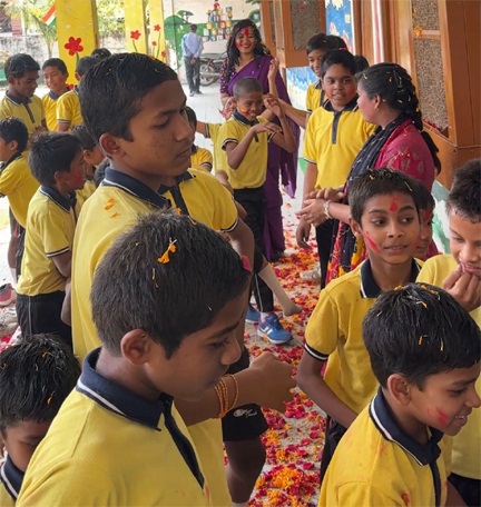 कार्यक्रम में सभी बच्चों ने एक-दूसरे को फूलों एवं हर्बल गुलाल से रंग लगाकर होली खेली और उल्लासपूर्वक त्योहार मनाया।